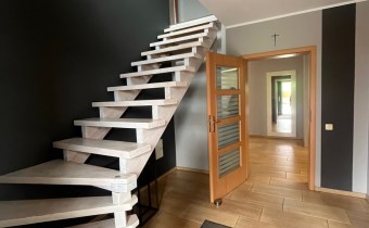 Parter -przestronny salon z aneksem kominkowym, kuchnia otwarta na część dzienną, wiatrołap, garderoba, łazienka, pokój dzienny, pomieszczenie gospodarcze, oszklony taras, zewnętrzny taras z automatyczną markizą.