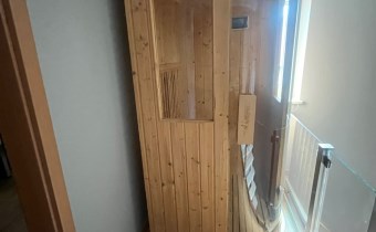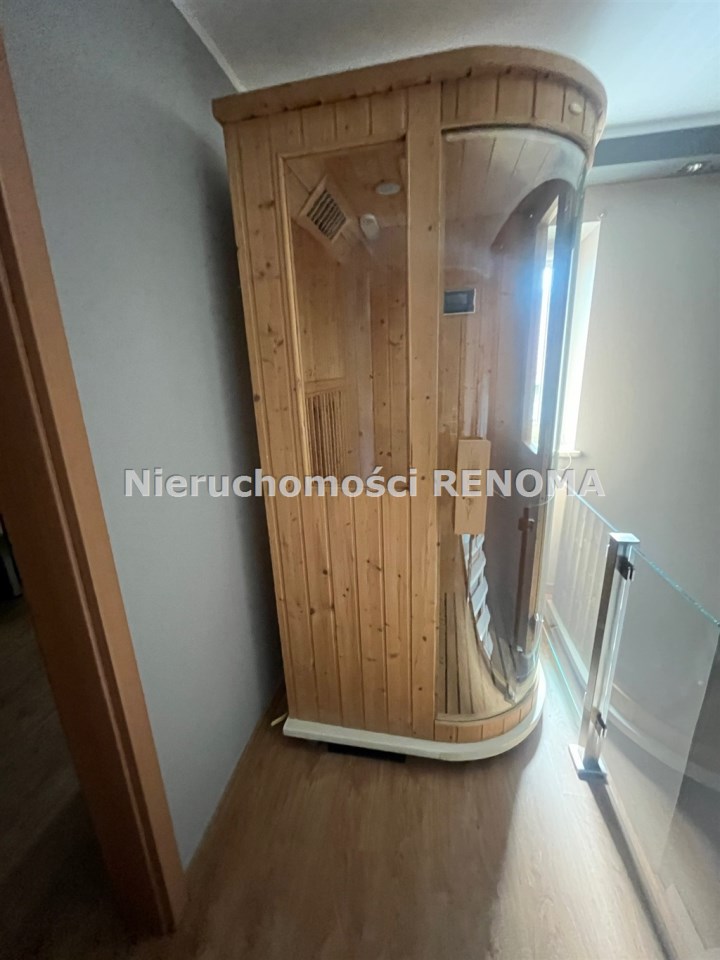 Piętro- 3 sypialnie, garderoba, łazienka, sauna.