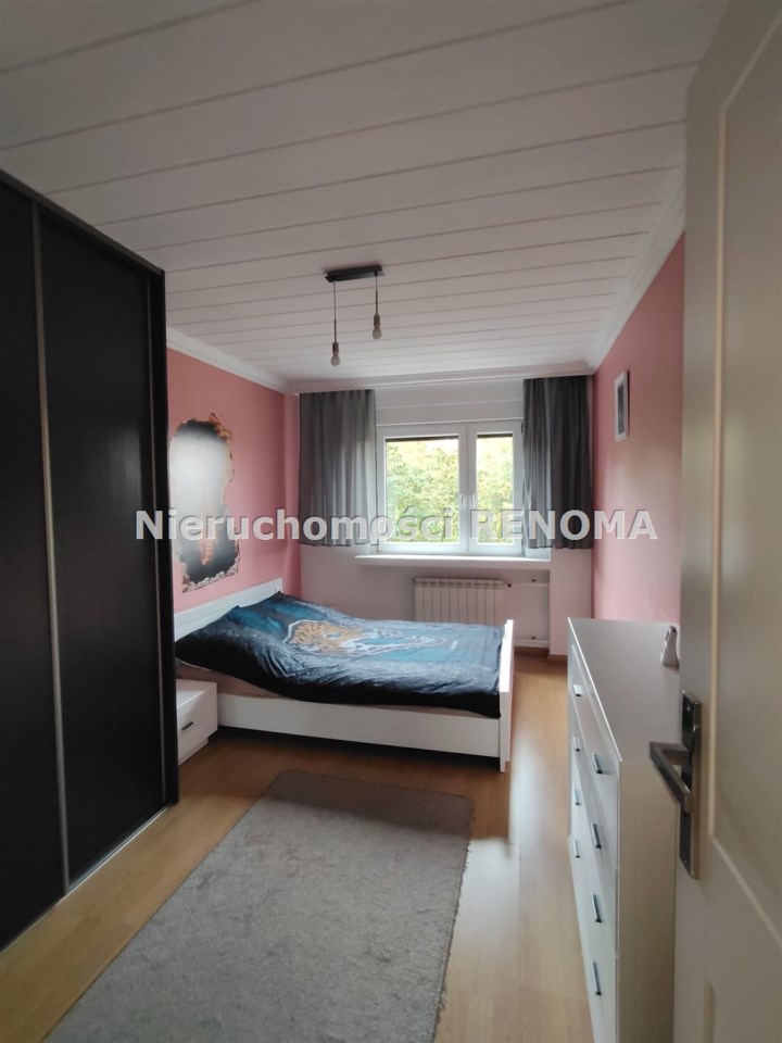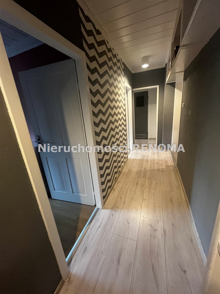 W skład mieszkania wchodzą trzy nieprzejściowe pokoje, dużej kuchni z oknem, łazienki, wc oraz przedpokoju. Do mieszkania przynależy komórka na piętrze oraz duża piwnica. W pokojach na ścianach gładzie, na podłogach panele. W łazience glazura, na wyposażeniu wanna. W kuchni pozostają meble w zabudowie wraz ze sprzętem AGD.