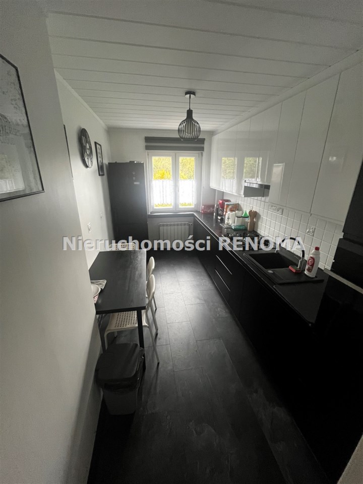 W skład mieszkania wchodzą trzy nieprzejściowe pokoje, dużej kuchni z oknem, łazienki, wc oraz przedpokoju. Do mieszkania przynależy komórka na piętrze oraz duża piwnica. W pokojach na ścianach gładzie, na podłogach panele. W łazience glazura, na wyposażeniu wanna. W kuchni pozostają meble w zabudowie wraz ze sprzętem AGD.