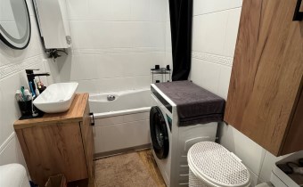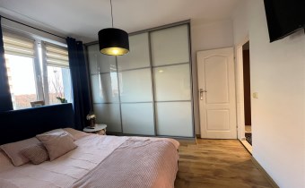 W cenie mieszkania pozostaje szafa na wymiar i łóżko sypialniane.